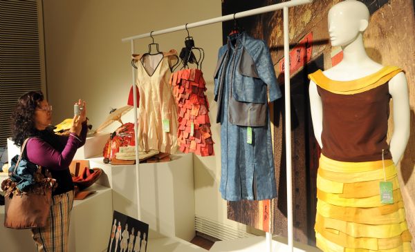 A visitor takes photos of the displayed dresses during a Hakka's originality costume show in Taipei, southeast China's Taiwan, June 5, 2010. A total of 120 sets of costumes were displayed on the show on Saturday. (Xinhua/Wu Ching-teng)