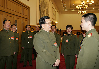 After hearing the PLA deputies' views, Hu said the next five years are crucial to China's drive for building a comparatively prosperous society in an all-round way. It is also "an important period" for the modernization of national defense and army building, he said.
