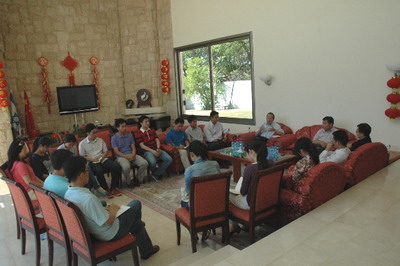 2010年5月3日,“五四”青年節前夕,中國駐以色列使館舉行一年一度的大使與青年同志座談會,趙軍大使在官邸與全館全體青年同志親切座談。
