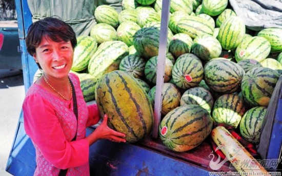 水果商販們從外地運輸西瓜會雇專業的運輸車輛,而且車輛上鋪滿稻草,防止西瓜在運輸途中磕壞。由于運輸司機常年拉送貨物,駕駛技術好,所以西瓜磕壞的情況比較少。在運輸車輛返回德州後,為了避免卸貨過程中損壞西瓜,司機會允許攤販在車上賣西瓜,但時間一般在3天左右。在這3天時間里,攤販要把車上的西瓜盡量賣給來選貨的商販。