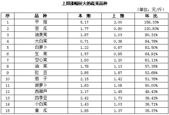 上周(10月31日——11月6日)氣溫逐漸下降,“冬意”的步步緊逼不僅改變了人們的衣著與飲食,也助推蔬菜價格上漲。