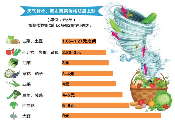 而近期天氣轉冷、迎來降雪天氣,更讓採購成本上漲,與上月下旬、本月初相比,進價成本的漲幅達到了10-15%。各地成本上漲,自然帶動了多種蔬菜銷售價格的上揚。