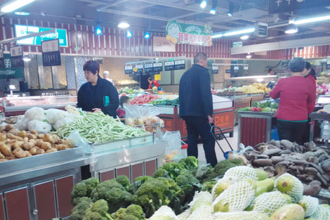 16日,在陶然路一農貿市場,市民在選購蔬菜。