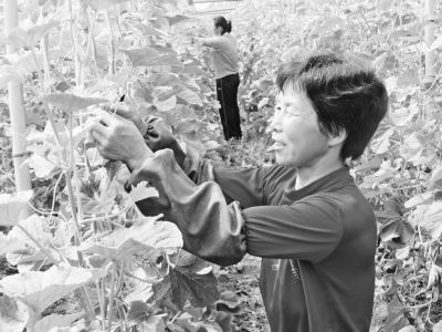 4月13日,在位于河南省葉縣田莊鄉西孫莊村的平頂山市頃園農業開發有限公司大棚內,員工們正在給羊角脆甜瓜打杈。近年來,該公司率先引進了物聯網種植新技術,採用電腦控制大棚里的溫度、濕度、肥料等,由于使用食品級肥料,作物不打農藥,種植的甜瓜含糖量高,口感好,深受消費者的喜愛。 劉迎旭攝
