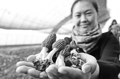 在北京昌平小湯山基地的溫室里,一個個小傘般的蘑菇頂蓋從土中鑽出來,象牙白的菌柄特別顯眼。今年,高檔野生食用菌羊肚菌首次在京栽培成功,總產量500余公斤。