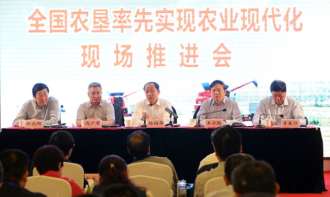 5月18日,全國農墾率先實現農業現代化現場推進會在江蘇連雲港召開。農業部黨組成員楊紹品強調,要認真學習、深刻理解中央農墾改革發展文件的部署,深入實踐“創新、協調、綠色、開放、共享”發展新理念,以保障國家糧食安全和重要農產品有效供給為核心,以轉變農業發展方式、調整農業產業結構為主線,以提升農業質量、效益和競爭力為方向,以創新驅動和供給側結構性改革為動力,實施聯合、聯盟、聯營戰略,加快推進農墾農業資源資產整合和產業優化升級,加快建設現代農業的大基地、大企業、大產業,構建農墾現代農業產業體係、生產體係和經營體係,走出一條具有農墾特色的“產出高效、產品安全、資源節約、環境友好”的現代農業發展道路。