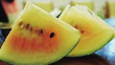 表皮翠綠,切開後紅黃鑲嵌,猶如冰淇淋的奶黃,吃一口酥爽可口,西瓜味醇正清甜,甜度適中,入口即化,雙色還會隨外界氣溫的變化而變化,美其名曰“雙色冰淇淋”。作為西瓜新品種,“雙色冰淇淋”實際早在1998年就培育而成了。
