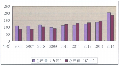 2006-2014年遠洋漁業產量產值對比圖(資料圖片)
