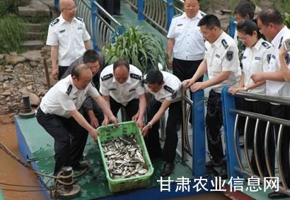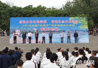 6月6日上午,由甘肅省農牧廳、蘭州市人民政府、甘肅省電力投資集團公司共同主辦的全國“放魚日”甘肅同步增殖放流活動在黃河蘭州段親水平臺舉行。本次活動的主題是“增殖水生生物資源,促進生態文明建設”。省農牧廳黨組書記、廳長康國璽出席並宣布增殖放流活動開始,省農牧廳黨組成員、副廳長妥建福主持活動儀式,省農牧廳黨組成員、甘肅省獸醫局局長周邦貴出席活動。蘭州市人大副主任毛仁出席活動,蘭州市人民政府副秘書長顏燁魯致辭,甘肅省電力投資集團公司副總經理劉曉黎宣讀倡議書。