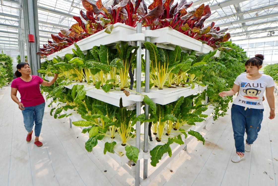6月9日,遊客在南和縣“農業嘉年華”參觀立體栽培的蔬菜。