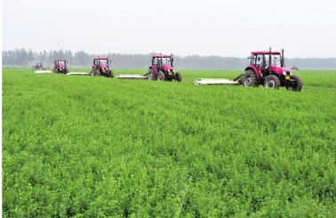 安徽蚌埠市五河縣的10萬畝牧草開鐮收割。李向前攝