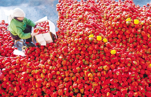 壽光東斟灌村的五彩椒承載著菜農的彩色夢。 劉瑞全攝