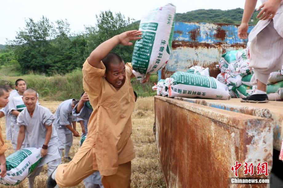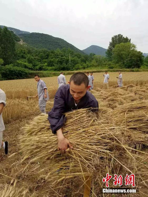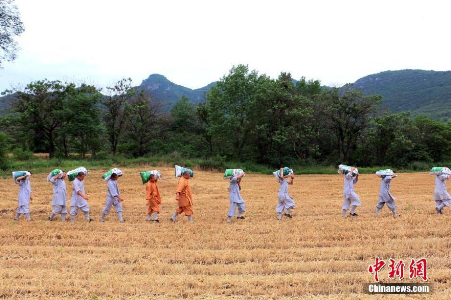 少林寺僧人顆粒歸倉收麥忙。岳龍