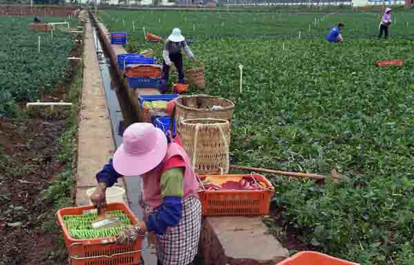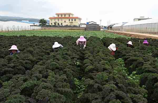 6月20日,茨營鎮團結村農民在蔬菜種植基地收菜。