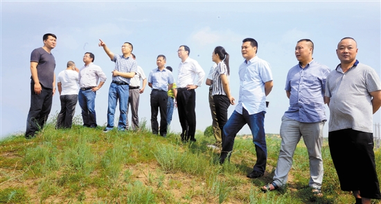 爬上山坡,瞭望遠方,大家一起構想綠色養殖產業園的美好未來。 鄧國芳 攝
