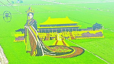 在遼寧省沈陽市沈北新區“稻夢空間”景區200余畝的稻田里,農民用9種顏色的水稻種出17幅“3D稻田畫”。
