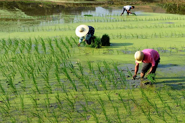 時下,桂西山鄉剛忙完早稻夏收的農民又搶抓農時忙著夏種晚稻,力爭全年早、晚兩季水稻雙豐收。新華社發(韋萬忠 攝)