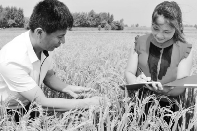 7月21日,河南省信陽市光山縣斛山鄉范鄉村眾森高效生態合作社社員正在田間研究、察看、記錄頭茬再生水稻灌漿狀況、結實粒情況和再生水稻抽穗管理技術。該合作社規模化種植再生水稻5年,2016年種植面積達到6150畝。再生水稻種一季收兩茬,畝均比常規雜交水稻增收700元以上,帶動當地34戶貧困農民種植再生水稻,戶均年增收2.3萬元。謝萬柏攝