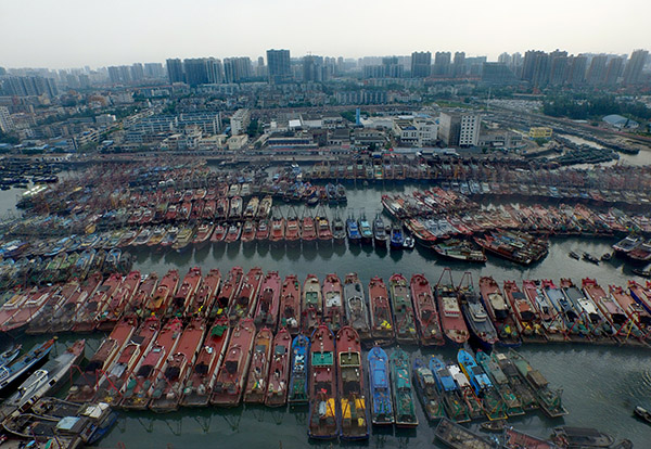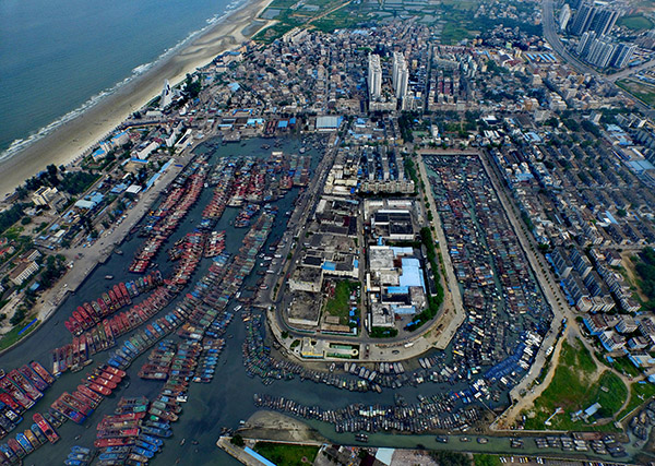 當日, 今年第4號臺風“妮妲”即將影響廣西北海,剛剛結束伏季休漁的數千艘漁船推遲出海捕魚。(新華社記者 黃孝邦 攝)