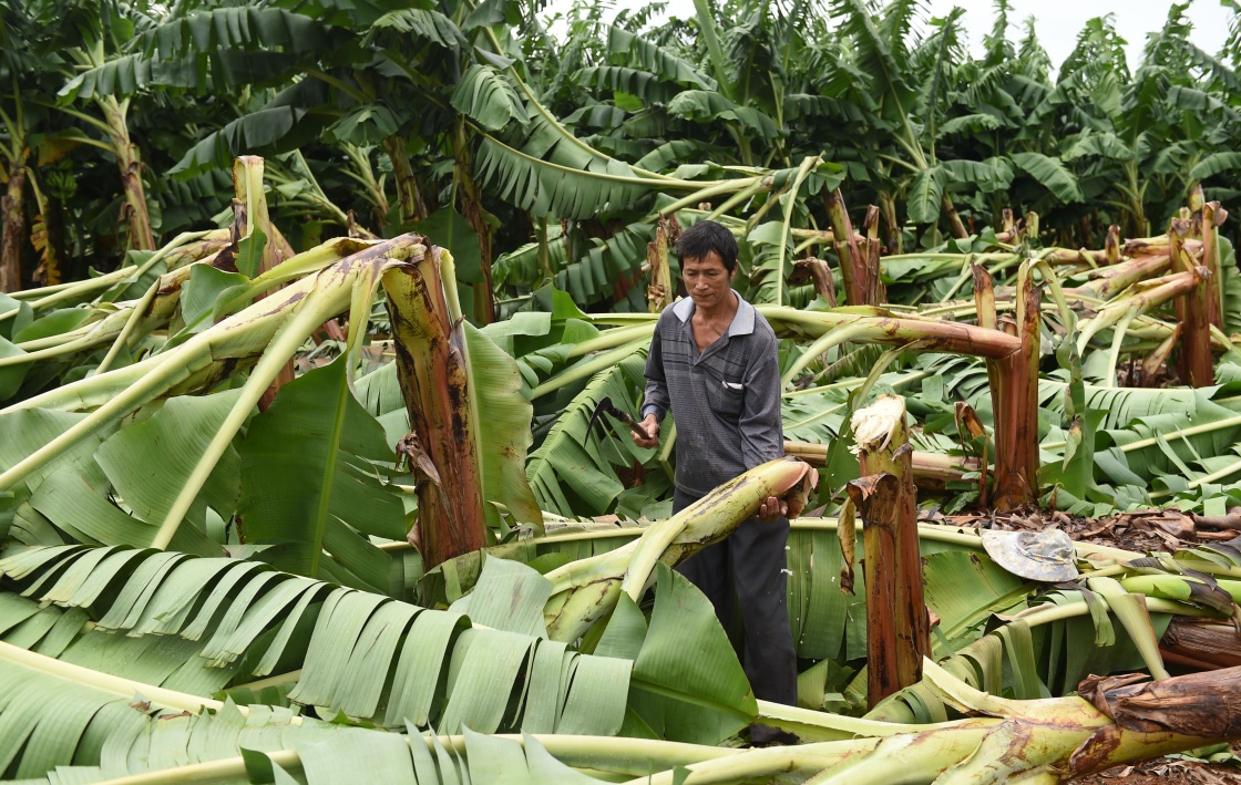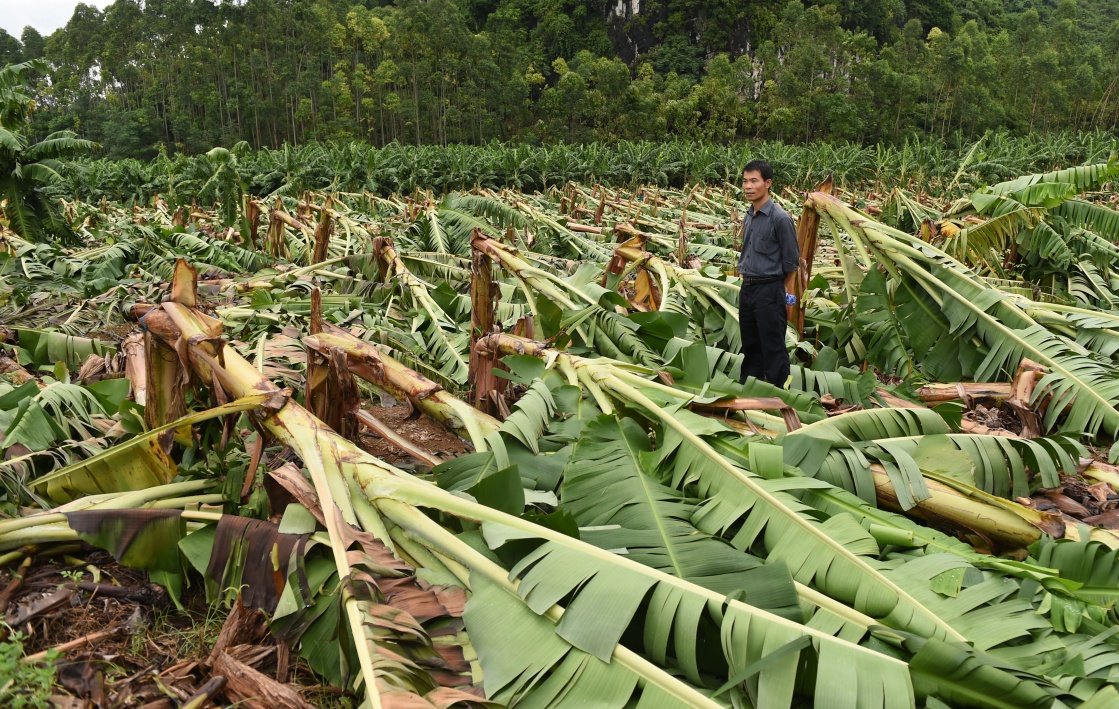 8月4日,廣西南寧市武鳴區寧武鎮種植戶牙政國在清理被臺風吹倒的香蕉。