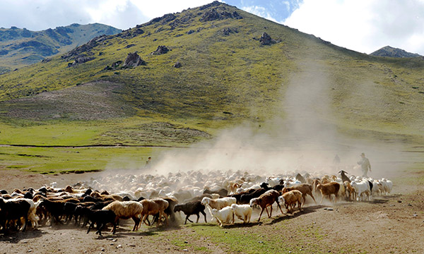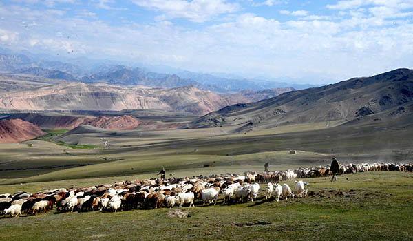 近日,在新疆克孜勒蘇柯爾克孜自治州,生活在中國——吉爾吉斯斯坦邊境地區的柯爾克孜族牧民進入秋季轉場時節。在高海拔地區的降雪來臨之前,上百萬頭牲畜要從夏牧場遷徙至秋牧場。為確保轉場順利,克州邊防支隊為轄區轉場牧民提供全程服務,幫助牧民管理羊群,保護牧民的生命財產安全。