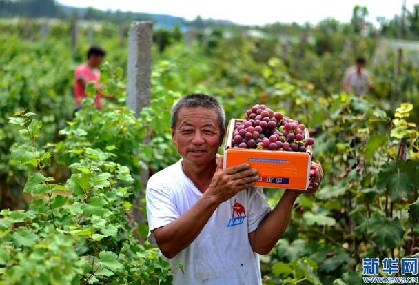 8月23日,河北省威縣東夏官村農民在搬運葡萄。