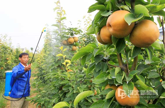 8月22日,烈山區古饒鎮遠創農業技術人員在給晚秋黃梨打藥,做好田間管理工作,確保晚秋黃梨豐產豐收。