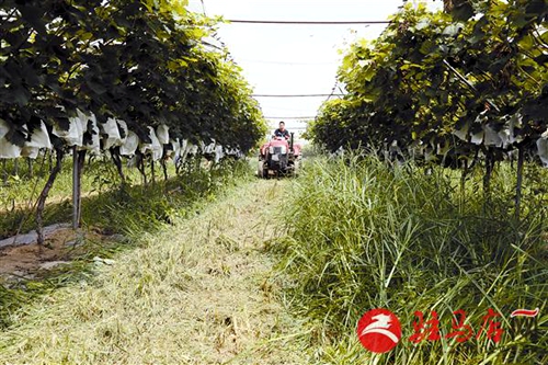 在驛城區的河南順發生態園,工人在進行除草、還田施工,把打碎的草歸還葡萄園,不但可以減少藥物使用,還可以為果樹增肥。目前,我市葡萄園建設方興未艾,業主因地制宜,採用生態環保生產運作方式,為廣大市民提供優質果品。