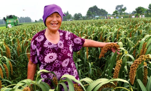 在寧陵縣趙村鄉周石碑村一處農田里,一位老大娘手托沉甸甸的谷穗,臉上露出豐收的喜悅。今年她家種植的大穗谷子豐收在望,畝產可達500公斤,經濟效益要比種植玉米高1倍。