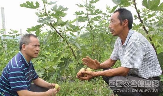 9月6日,在永豐縣鹿岡鄉李家村,鄉技術人員正在指導農戶管理無花果。“無花果被譽為‘天堂聖果’,清甜芳香、營養豐富,具有很好的食療功效和藥用價值,盛果期,預計畝產量在1000公斤左右,每畝收益可達3萬元。