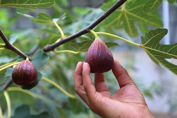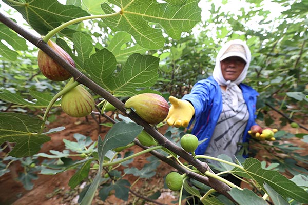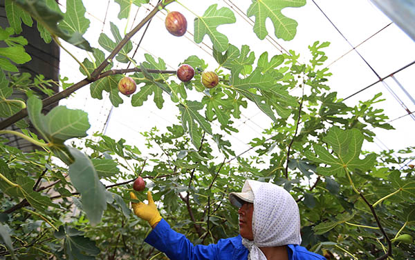 9月7日,在大連市金普新區大魏家街道,果農在採摘暖棚無花果。