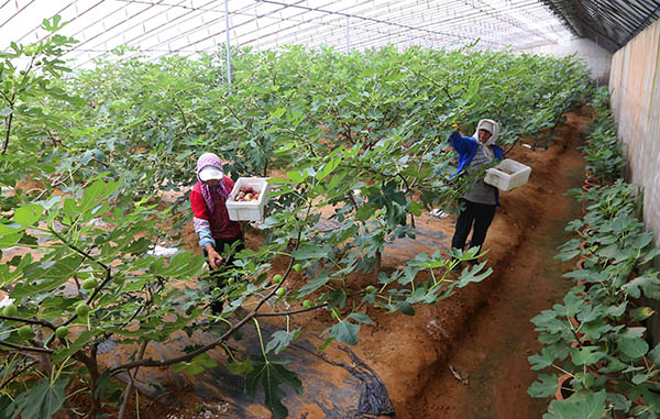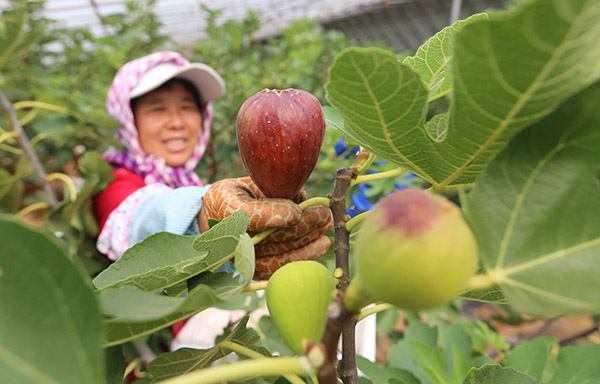 近日,遼寧省大連市金普新區大魏家街道一果園培育的3萬棵暖棚無花果進入豐收季。幾年前,當地農技人員從國外引進無花果在暖棚內通過“控溫栽培”技術種植獲得成功,暖棚無花果適應了當地的氣候,果期可持續至冬季。新華社發(樸峰 攝)