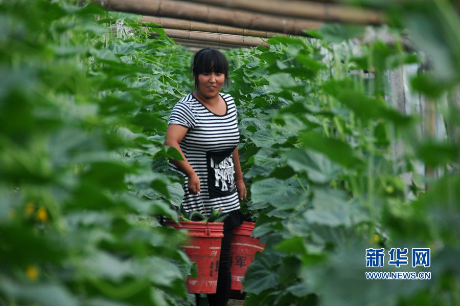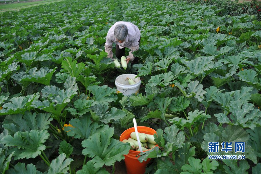 9月10日,河南省安陽市內黃縣城關鎮農民在採收蔬菜。