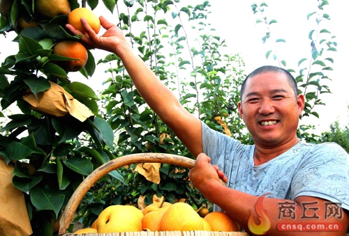 寧陵縣趙村鄉孔莊村果農正在果園採摘黃金梨。近年來,趙村鄉孔莊村村民孔濤流轉土地200余畝種植黃金梨,今年喜獲豐收。黃金梨具有酸甜適口、個大味美的特點。