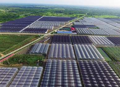 俯瞰海南新發地“海口龍華龍泉萬畝蔬果產業園”。其中,自建區2000畝, 帶動區將由產業園提供技術幫助農民致富共8000畝。該產業園目前建有集中連片高標準鋼結構種植大棚和集約化育苗玻璃溫室,初具現代高效農業基地雛形。