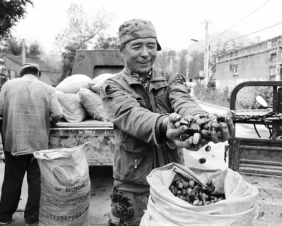 眼下,延慶區大莊科鄉板栗集中上市。據悉,大莊科種植板栗歷史悠久,面積達2萬畝,最老古樹樹齡有五六百年。今年,板栗銷售價格較去年有所提高,每公斤售價在12元至15元。圖為村民展示收獲的板栗。