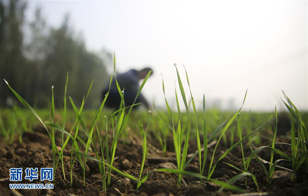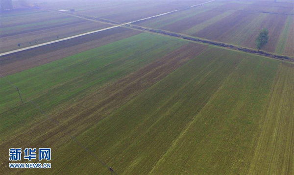 近日,河南省寶豐縣播種的冬小麥破土而出,青青的麥苗吐露新的希望。
