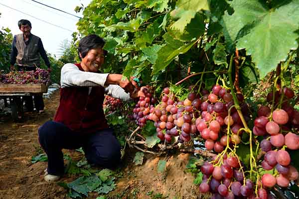10月20日,乳山市諸往鎮二龍口村村民在採摘葡萄。