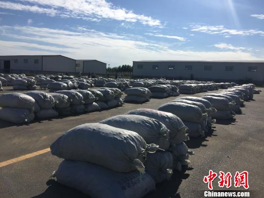 圖為已經打包好,等待發往全國各地的開魯紅幹椒。
