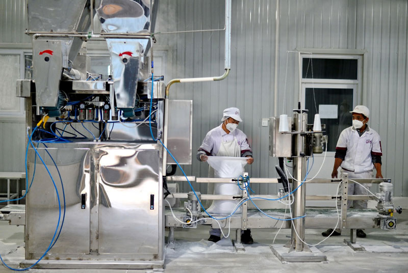 10月27日,河北省新河縣永盛達農業產業發展有限公司工人在紅薯淀粉生產線上工作。