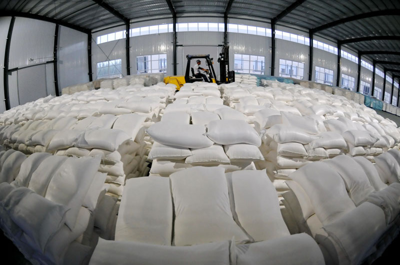 10月27日,河北省新河縣永盛達農業產業發展有限公司的工人將生產的紅薯淀粉運到倉庫。