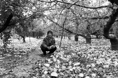 她說她和丈夫老何侍弄這片富士品種的蘋果園已經20多年了,由于不辭辛苦精心管理,現在高大的蘋果樹每年都結下不少蘋果,一直是全家收入的主要來源。本指望今年蘋果豐收後還能像往年一樣掙個滿意的辛苦錢,可是近期接連不斷的陰雨低溫天氣,卻讓已經熟透的蘋果吃不消,大量掉落地上摔成了廢果爛掉。“往年也有掉果,可從沒有這麼多過,現在按照總產量保守估算,掉落地上的也有一半兒多了。”孫淑蘋說。
