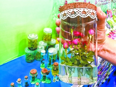 北京展區分休閒觀光農業區、農業電商企業區、農民專業合作社區等七部分。與以往不同,今年展區內五花八門的瓜果梨桃不再擔當“主角”,遨遊太空的一批新品種成了觀眾眼中的香餑餑。除老牌“明星”螺絲椒、彩椒等太空蔬菜外,通州國際種業科技園的神舟綠鵬農業科技有限公司,還帶來了太空試管花卉。幾支太空微型月季,插在一根透明玻璃管里,依靠營養基,花期可達50余天。期間不用澆水、施肥,最適合忙碌的上班族。不同型號的試管里,分別插有太空樹莓、太空金線蓮等10多種植物,就連太空香蕉苗也住了進來,觀眾連連稱奇。