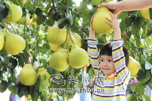 秋收季節,金柚飄香。梅縣區松口鎮大黃村千畝金柚迎風搖曳,鮮明的晝夜溫差醞釀著甜蜜的果實。2015年,梅縣金柚年售26億元, 農民人均金柚純收入約5000多元佔全區農民人均純收入30%,成為蘇區人民的“致富果”。梅縣區作為中國金柚之鄉,是國內最大的金柚商品生產基地,“中華名果”品質享譽海內外。近年來,梅縣區緊扭“產業組織化、生產標準化、經營品牌化、管理信息化”等抓手,做大做強金柚產業。而省級及國家現代農業示范區等項目陸續落戶,撬動這一傳統產業與深加工、電商、旅遊等行業跨界融合,促進一、二、三產業融合發展,驅動著梅縣區金柚產量、品質、效益齊頭並進,使“金柚經濟”步入發展高速路。2016年5月“梅縣金柚”地理標志證明商標獲國家工商總局商標局正式注冊,成為梅縣區第一個地理標志證明商標。