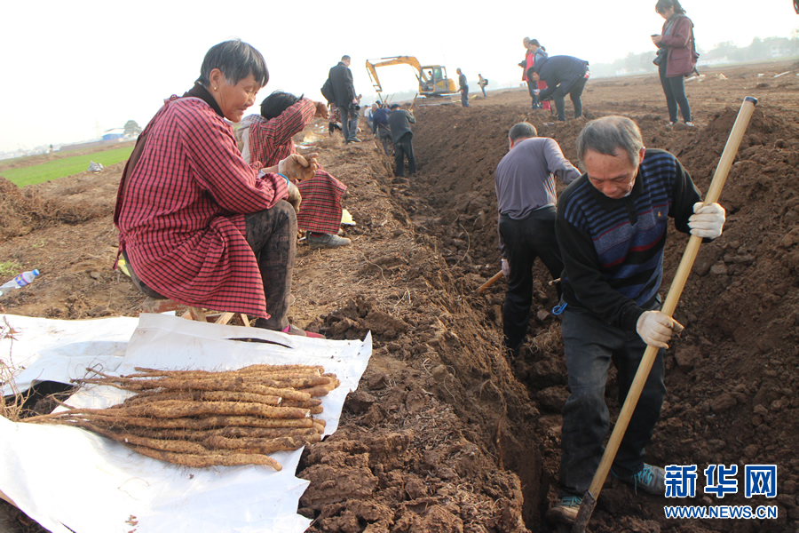 據了解,今年溫縣鐵棍山藥總種植面積2.2萬畝,其中以鮮貨銷售為主的壚土地山藥面積1.1萬畝,中秋節至今已採挖銷售2800畝,目前僅剩余8200畝,除去部分企業深加工產品原料消耗外,今年真正的溫縣鐵棍山藥上市量為6000噸左右。新華網發(王海霞 遊黎 攝)