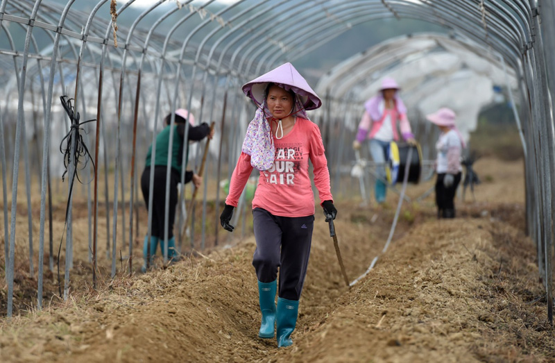 11月13日,工人在南寧市興寧區五塘鎮一處蔬菜產業示范區勞作。