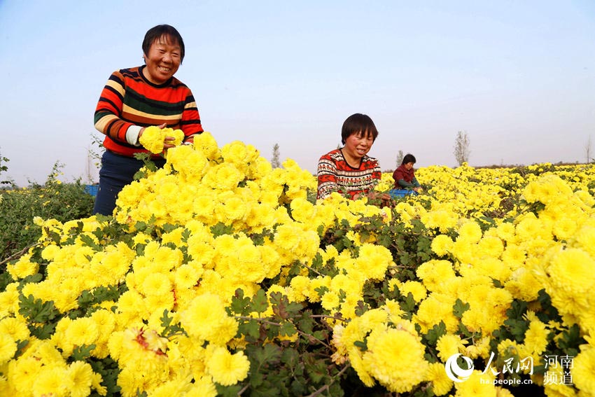 “不是花中偏愛菊,此花開盡更無花。”初冬時節,著名“懷藥”產地河南省溫縣迎來懷菊花採收旺季,金色大地一派農民忙碌收獲的景象。