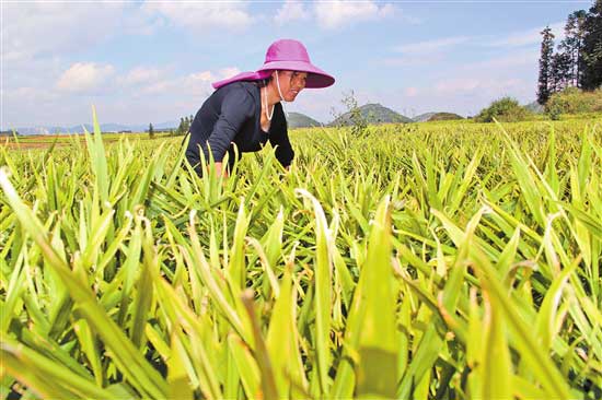 羅平縣氣候溫和,雨量充沛,日照適中,是小黃姜生長的理想之地。該縣將小黃姜作為精品產業、特色產業進行打造,產量逐年提高,已發展成為與烤煙、油菜並重的支柱產業。2006年,“羅平小黃姜”成功注冊為國家地理標志證明商標後,品牌效應日趨凸顯,市場持續走俏,姜農收入也隨之增長。今年以來,該縣依托生姜產業技術創新戰略聯盟的科技成果,進一步加大科技指導力度,從選種、整地、栽種、施肥、防治病蟲害等環節進行了跟蹤指導。