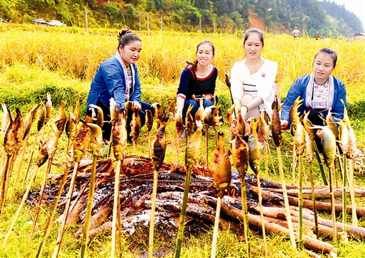 同時,桂北稻魚區融合旅遊優勢與民族風情,舉辦“稻魚節”、“多耶節”等活動,吸引遊客前來釣魚、下田捉魚、燒烤田魚,提升“魚米之鄉”魅力,使之錦上添花。