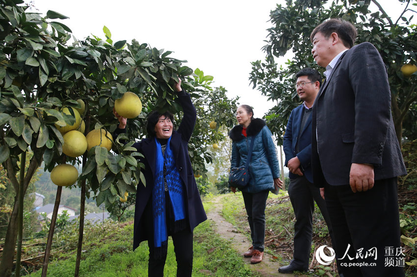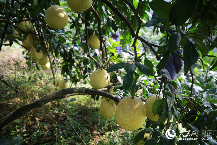 11月26日,在巴南接龍鎮蜜柚標準化生產基地,蜜柚挂滿了枝頭。